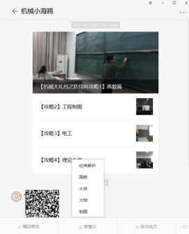 我们将开云kaiyun体育里品学兼优的同学集合起来,对内形成小海鸥之间的“高手切磋”,对外营造“朋辈互助”的良好学习氛围。为了将学习指导服务进行全方位覆盖,我们建立了机械小海鸥互助群,同学们有什么不懂的题目随拍随发,小海鸥会在第一时间解答,有时身边没有草稿纸,便把餐巾纸拿来写解题过程,随时随地服务需要帮助的同学。机械小海鸥拥有属于自己的微信公众号,线上有丰富的学习大礼包,定期输送正能量的“深夜食堂”等系列,还有创新的活动报名方式,正是身边同学们的有力支持才使机械小海鸥的影响力不断扩大!