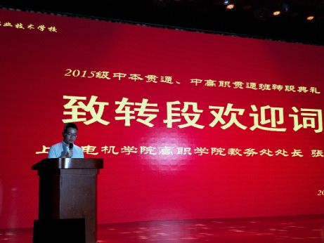 在典礼上,张帆处长代表我们学校致转段欢迎词,祝贺所有中本贯通班、中高职贯通班的同学经过三年的刻苦学习顺利毕业,感谢各位同学和家长的信任,选择了我们电机学院,感谢群益职业技术学校的辛勤付出,为我校培养出诸多优秀学子。同时,张处长还强调,转段不是结束,而是一个新的起点,同学们今后就是我们电机学院的一员,是一名大学生了,要提前做好自己的职业规划。提醒同学们:负重前行,不负期望,再接再厉,再创辉煌!