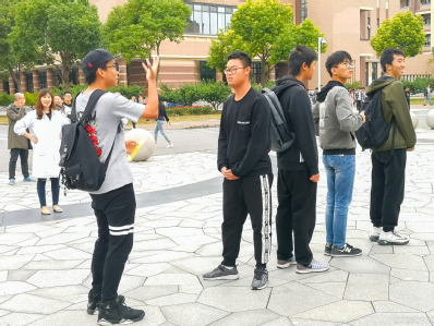 半月广场上树立起活动签名墙与宣传展板,吸引了不少教工与学生的关注。