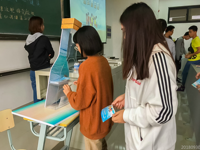 下午两点,在C412教室开展了接受/投放“心声漂流瓶”现场活动。根据青年人群常见心理健康问题,整理挑选部分有代表性的话题制作了写有心声留言的信息卡片,放置在统一的漂流瓶道具中,邀请讲座现场参与活动的学生进行卡片的抽取,并在卡片上书写反馈留言后放回漂流瓶中,完成接受和投放活动。通过对心声留言的解读,促使大学生关注、反思常见心理问题,并引导他们主动进行自我疏导。