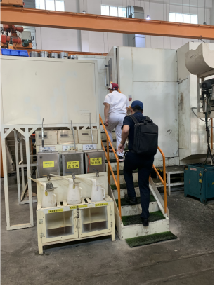 团队技术人员在武藏精密汽车零部件(中山)有限公司机加工车间、热锻车间和冷锻车间进行参观,并与质检人员就冷镦工艺进行交流。经过参观并与国产汽车零部件企业软硬件条件进行比较,切实体会到了国内精密锻造行业与日资同行之间存在的差距。