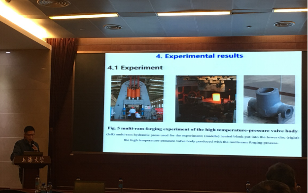 本次会议共安排29篇口头报告和9篇墙报。参会代表在会上交流了与材料服役性能有关的水冷堆核电站安全性与可靠性、核电站材料服役性能的实验评价等方面的最新研究进展。开云官网任杰老师代表任运来教授在会上做了题目为《Study on the multi-ram forging technology for the high temperature-pressure valve body》的特邀学术报告。该报告以借助多向模锻方法制造一个三寸闸阀阀体为例,通过采用数值模拟方法系统研究了凸模运动次序对成形载荷、合模力、水平冲头载荷以及垂直冲头载荷等的影响规律,后续性能测试表明采用多向模锻方法生产的阀体的机械性能远高于现有标准要求。该报告充分展示了我校近年来在多向模锻领域取得的研究成果和技术优势,受到与会专家的广泛好评。