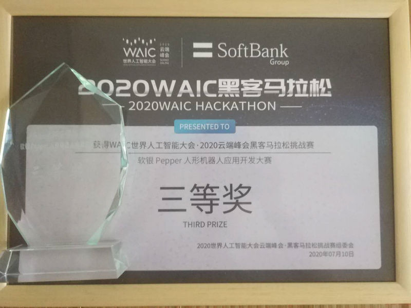 参加软银 Pepper 人形机器人应用开发项目要求参赛者拥有较丰富的安卓开发经验;在相关垂直行业为客户提供解决方案的集成和设计能力;使用云计算和 AI 技术赋能商业智能;并在线下赛场比赛、交流展示。本次比赛过程中,我校学生面对来自不同企业、科研院所和其他高校的顶级开发者毫不畏惧,在“自强不息、追求卓越”精神鼓舞下,越战越勇,从主办方的线上白板挑战中脱颖而出,参加在上海张江人工智能岛现场三天两夜的编程与实践,最终夺得三等奖。