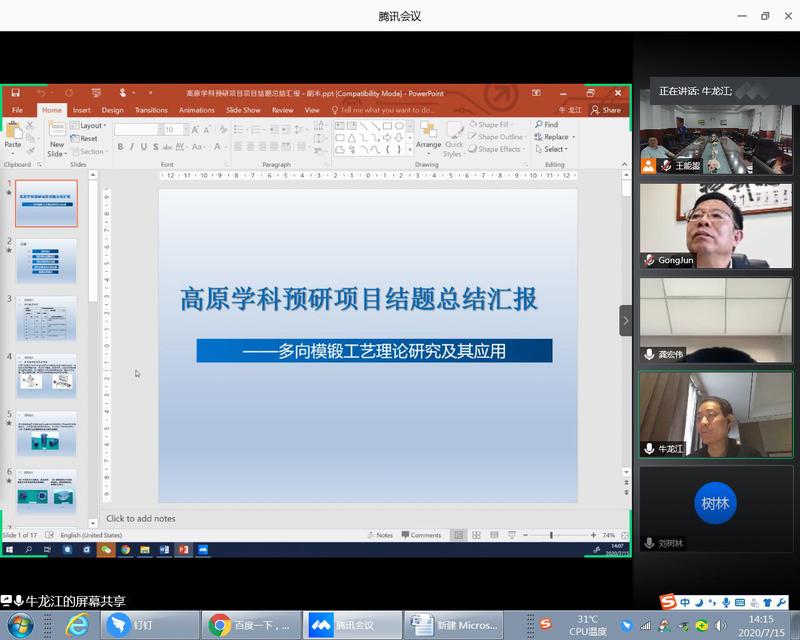 2020年7月15日下午1:00点,高原学科在机械楼308会议室及线上举行了“2018年度高原学科-机械工程预研及开放基金项目”验收答辩会议。会议由高原学科负责人辛绍杰教授主持,会议邀请了上海大学刘树林教授及企业专家龚宏伟、龚军先生担任项目验收专家。