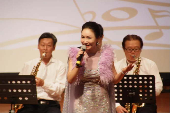 最值得期待的是纪晓兰女士的出场,她的出场,使音乐会的气氛达到了高潮。由她独唱的《苏州河边》《如果没有你》等歌曲让人回味无穷。特别是《苏州河边》这首歌,歌声与歌词融合在了一起,让人感受到歌曲的意境就像太湖—苏州河—黄浦江—东海那样层层递进,较之原唱,别有韵味,同样优美好听。