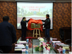 然后,辛绍杰院长和王忠主席代表双方签订了共建联合实验室的合作协议。陈年生处长和王忠主席为“工业机器人联合实验室”揭牌。