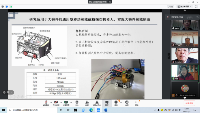 会上,辛教授首先介绍了专家组成员、中期检查项目的立项背景和会议日程。专家组成员分别听取了高原学科2020年立项的预研及开放基金项目“大锻件磁粉探伤智能机器人关键技术研究”、“大型锻造复杂零件的表面微小细裂纹磁粉探伤”等四个项目的负责人所作的项目中期工作汇报,对照项目中期考核指标,对每个项目分别进行了技术、经济、进度的提问、答辩与评审。最终经评审专家讨论商议后,同意参加答辩的四个项目通过中期检查。专家组还给各项目组提出了宝贵的建议。最好,辛教授代表高原学科对各位专家的辛勤工作表示感谢!