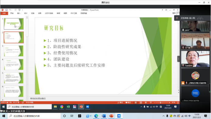 2021年3月3日,开云kaiyun体育召开上海市高原学科-机械工程2020年立项预研及开放基金项目中期检查答辩会,答辩会以线上会议形式举行。参加本次答辩会的专家组成员分别为:组长山东大学博士生导师王广春教授、组员分别是上海振华重工(集团)股份有限公司原总工程师严云福教授级高级工程师及上海联宏创能信息科技有限公司董事长兼总经理龚军。高原学科负责人辛绍杰教授出席了本次答辩会。