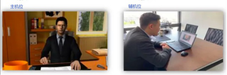 复试前按要求安装调试好设备。考生端两台设备开启摄像头,主机位自带摄像头对准考生本人,辅机位手机摄像头从考生后方成45°拍摄。要保证主机位屏幕能清晰地被复试专家组看到。见附图: