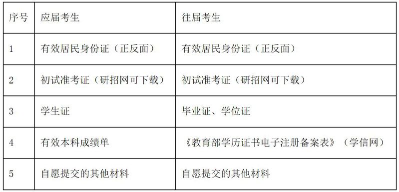 b、对符合复试基本要求的同等学力考生,将以下电子版材料(jpg、pdf等格式)在上述时间发送至邮箱,逾期视为放弃: