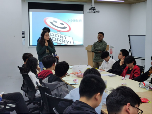 活动伊始,每一组代表讲述一个故事或者案例,并就此故事和案例相互做分析交流。活动开展过程中,同学们因认识到了其他人看待事情的不同点而惊叹,也有同学因为观点相左展开了讨论、启发了思维。主持人和两位老师对此做出分析与评价,如果有负面情绪也给予了排解的建议与具体做法。