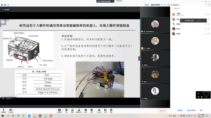 会上,辛教授介绍了专家组成员、立项背景及会议流程。验收专家组组长薛克敏教授组织了各个项目的验收评审工作。先后进行了“大锻件磁粉探伤智能机器人关键技术研究”等3项预研基金项目和“典型复杂形状零件多向模锻成形工艺及模具设计”开放基金项目的验收答辩。待项目答辩结束后,薛克敏教授组织专家组成员对各项目进行评审打分,给出验收是否通过的结论。项目验收评审结束后,辛教授进行了会议总结,并代表学科向与会专家表示感谢。
