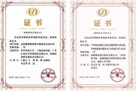 “高性能超精密模具制造技术及应用”和“严寒地区城镇自适应智能化燃气热水锅炉供热系统节能技术产品集成开发与应用”两项科技成果分别获得2021年中国发明创业奖·创新奖一等奖和二等奖。