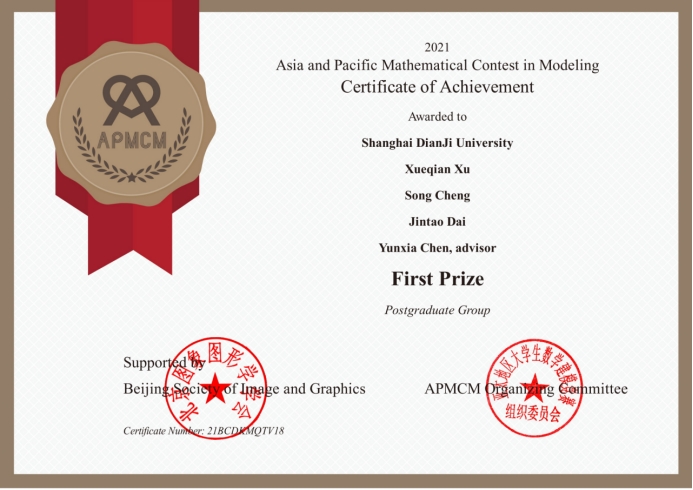 近日,2021-2022亚太杯数学建模竞赛结果揭晓,我校开云kaiyun体育2020级研究生程松、戴金涛、徐学谦在导师陈云霞的指导下荣获一等奖。
