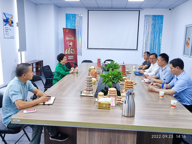 随后一行人前往上海长肯实验设备有限公司交流。张栋副院长介绍了学院的学科建设、研究生培养等情况。上海长肯实验设备有限公司总经理吴旭艳介绍了上海长肯实验设备有限公司在自动化设备、高温炉设计等方面的业务,并表示对仿真模拟相关人才的需求,期待双发在人才推荐、员工培训,企业实习,研究生联合培养等方面进行深入合作。