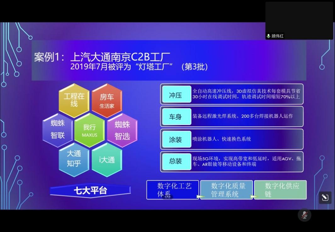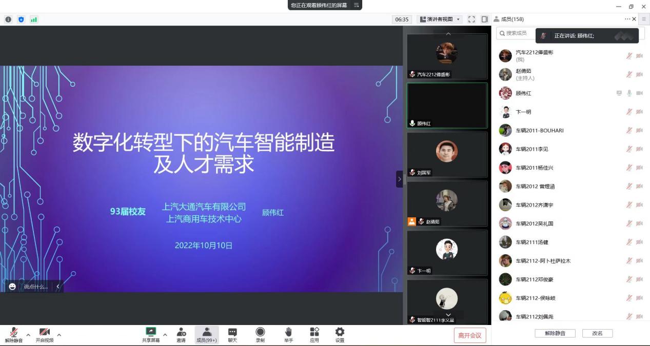2022年10月10日下午,开云kaiyun体育举办“大国匠苗”智能造专题第四场讲座,邀请我校93届校友,上汽大通汽车有限公司、上海商用车技术中心党委副书记、工会主席顾伟红在线上作了题为《数字化转型下的汽车智能制造及人才需求》的专题报告。此次活动由开云kaiyun体育党总支副书记刘国军主持,党总支书记卞一明致辞,学院师生200余人聆听了报告。
