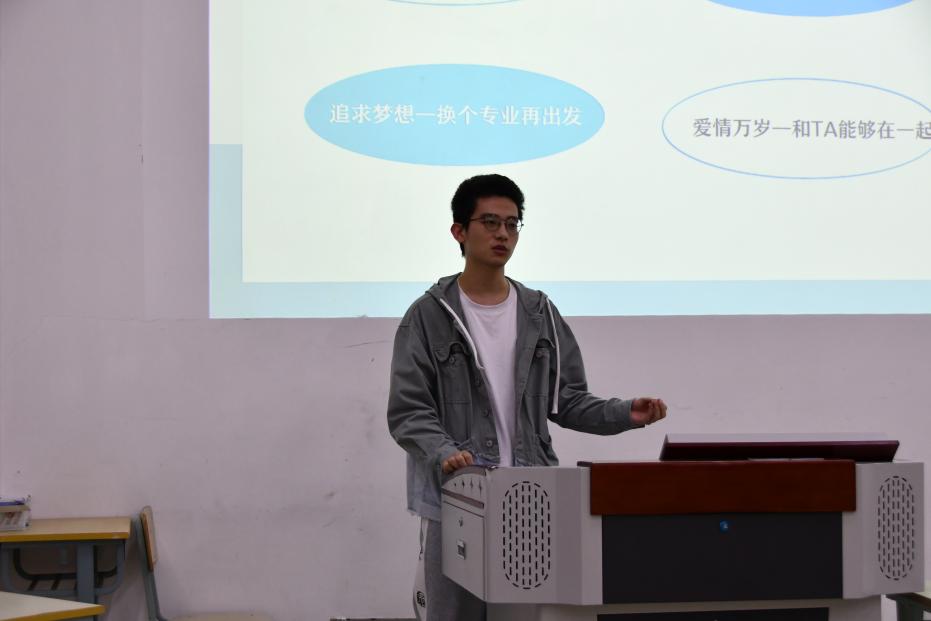 第二位分享同学黄越以风趣幽默的话语讲述了他的考研历程,强调要认清自己考研目的,不要人云亦云,考研人要有强烈的考研愿望才能坚持到最后。同时他提醒决心考研同学们选择大于努力,要打好考研信息战,做到知己知彼。最后他表示,考研过程中要定一个周期,比如以一周为限复盘自己学习成果,及时调整学习科目、内容、时间的分配,提高学习效率。学习他人学习经验时也要兼听则明,不能囫囵吞枣。