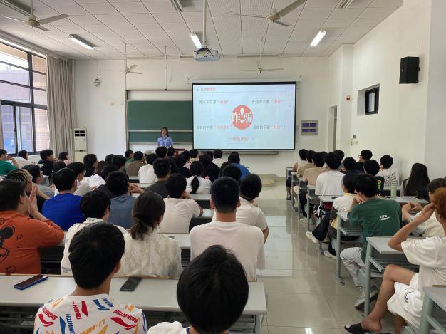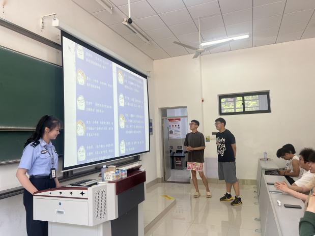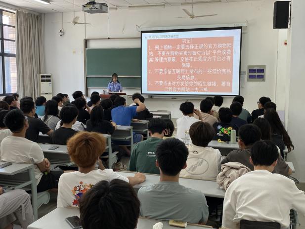 赵曼雯警官梳理了自开学以来,临港高校电信网络诈骗的发案情况。她指出,大学生为主要受害对象的校园诈骗案例频发,针对目前学生们面对各类诈骗案件时普遍存在的防范意识不强、辨识度低的现象,她围绕“裸聊诈骗”“网络约炮”“网络交友诈骗”“虚假购物、虚拟游戏产品交易诈骗”“刷单返利诈骗”五方面进行全面讲解。赵警官通过邀请现场同学模拟演绎,提醒同学们在日常生活中要时刻保持警惕,不随便点击不明链接,不轻信低价商品交易信息,安全规范上网,并带领同学们一起跟读反诈宣传语:“不裸聊、不刷单、有钱不要‘投资理财’,没钱不要‘网贷’”,让同学们在生动活泼的氛围中,提高反诈意识和能力。