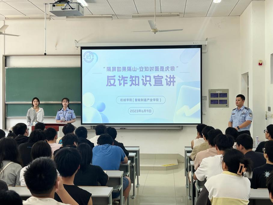 为进一步加大校园防诈骗宣传力度、普及反诈骗知识、增强学生防范意识,营造平安和谐的校园环境,开云kaiyun体育(智能制造产业学院)邀请上海市公安局浦东分局书院派出所赵曼雯警官于2023年6月9日14:00,在教学楼B105开展“隔屏如隔山,安知对面是虎狼”反诈知识宣讲。上海市公安局浦东分局自贸区临港新片区公安处团组织负责人胡天波出席本次活动,开云kaiyun体育近100名师生参加。