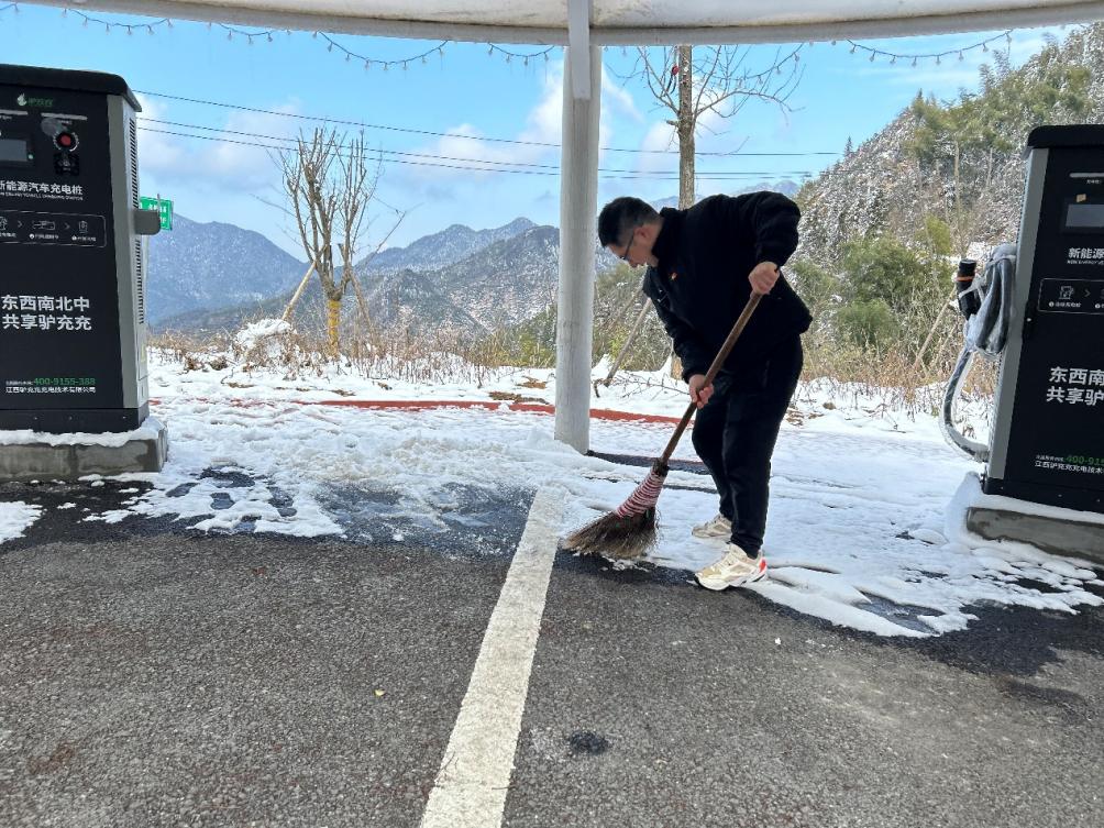 第六党支部书记杨金平加入了清理家乡的怀玉山风景区道路上的积雪,以实际行动走在服务群众最前列。