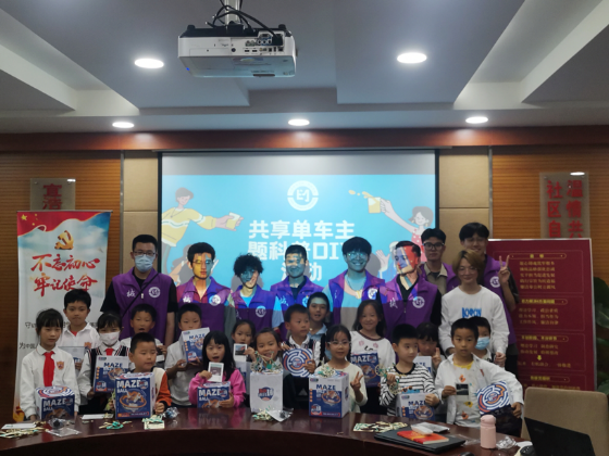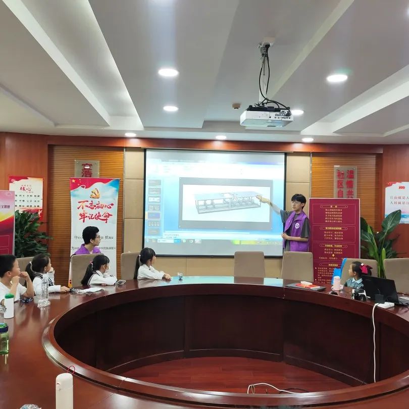 活动从低碳出行的概念入手,周华伟同学围绕自行车演变史、共享单车和低碳出行等知识,通过生动的图片和实例向孩子们介绍了如何减少碳排放、保护环境。接着由韩宝德同学展示了团队的科创项目——“共享单车智能借还系统”,通过视频演绎实际的设备系统,并讲解该系统的工作原理和创新之处,激发了小朋友们对科技创新的探索欲望。