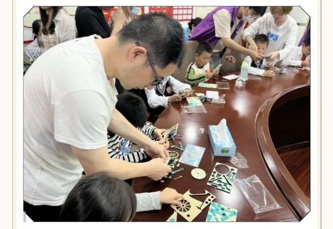 为了让小朋友们更深入地了解自行车的构造和原理,学生党员及团员志愿者们准备了自行车手工制作的环节。他们向小朋友们详细介绍了自行车的各个部分,并教授小朋友们如何亲手制作一个简单的自行车模型。小朋友们兴致勃勃地动手操作,通过拼装零件,亲身体验了制作过程中的乐趣和挑战。他们在学生党员及团员志愿者的指导下,完成了自己独特的自行车模型,充满了成就感和自豪感。在丰富知识、提高科技创新能力的同时,也进一步树立了低碳出行、绿色环保的意识。