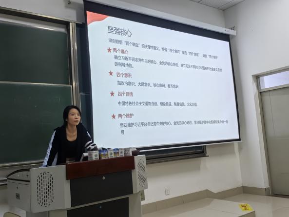 会议伊始,赵老师带领大家学习贯彻习近平新时代中国特色社会主义思想主题教育的核心要义,重点围绕“两个结合”“六个必须坚持”“十个明确”“十四个坚持”等主题开展学习研讨,增进团支部成员对党的创新理论的政治认同、思想认同、理论认同、情感认同。