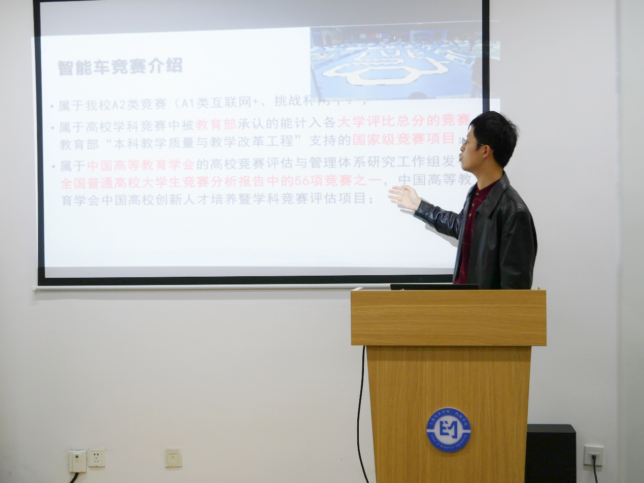 讲座中,严屹宏老师对历届智能车比赛进行了详细介绍,通过列举的形式梳理了智能车比赛的发展史,同时对近几年我校比赛情况进行解读,并详细介绍了我校智能车社团等内容。