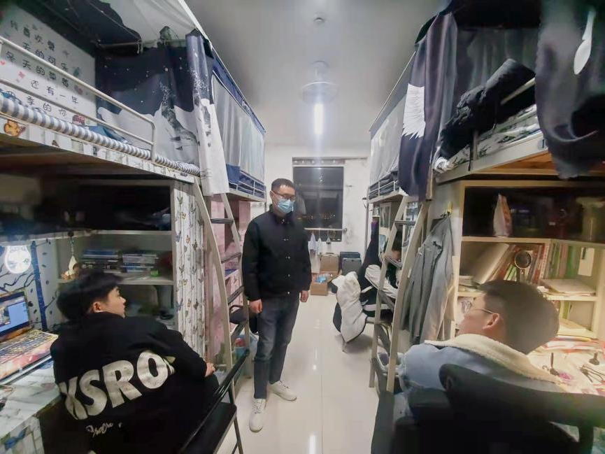 根据疫情防控要求,学校进行准闭环管理,开云官网留校教师李国玉深入学生宿舍,实地了解学生在准闭环下的学习生活情况,为学生送去关心和问候。