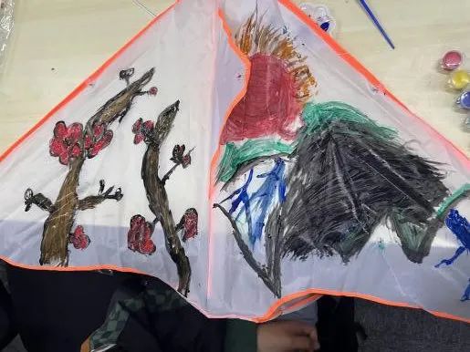 活动过程中,同学们以不同的图案装点自己的风筝,生动有趣又诗情画意,承载着大大小小的心愿与热爱。