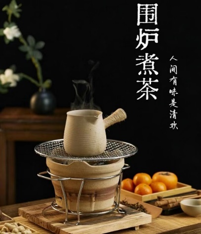 围炉煮茶,以中国传统茶文化为载体,用一炉热火簇拥起阵阵暖意;然后用在秋天收获的各式水果和坚果来烤出幸福的香气。沏水,冲泡,再添上几朵花茶和一盅牛奶,空气弥散出馥郁的奶香味;再分汤,品茗,一切都那么自然,能够让人不约而同的把心柔下来,于快节奏中抽离,享这片刻静谧。好友相伴,围出一方天地,自是轻松自在。
