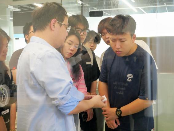在犀浦智能工业4.0工厂参观过程中,技术总监吴老师为大家讲解并演示了从客户下订单到成品入库的整个生产过程,生产速度之快,识别准度之高,充分展现了生产线信息化和智能化极高水平。师生们认真听其讲解,并围绕机器视觉、数字孪生的发展前景以及在产教融合的应用等方面提出问题。吴老师一一解答,与师生进行了互动和交流,并且表示数字孪生是实现大学生创新创业的有效方式。