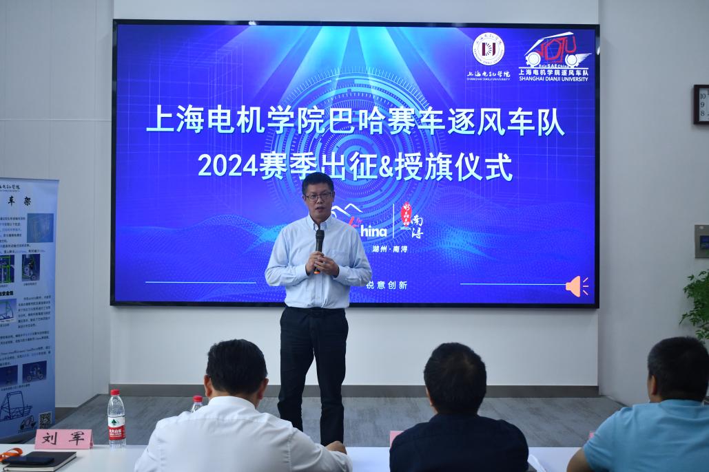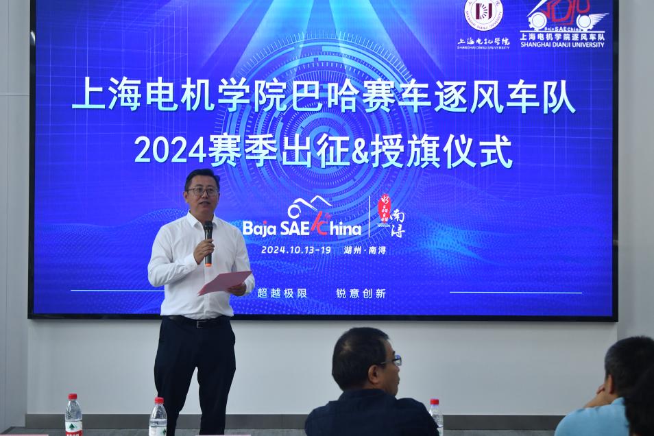 仪式上,副校长王宏志对学院巴哈车队师生的辛勤付出、不懈努力及奉献精神给予了充分的肯定。王副校长深情寄语车队,对未来充满了无限的期望与憧憬。他强调,学校将一如既往地作为巴哈赛车队最坚实的后盾,全力支持车队的建设与发展。他表示,期待车队在接下来的比赛中,能够继续发扬拼搏精神,再创佳绩,用实际行动为学校增添光彩,书写更加辉煌的篇章。