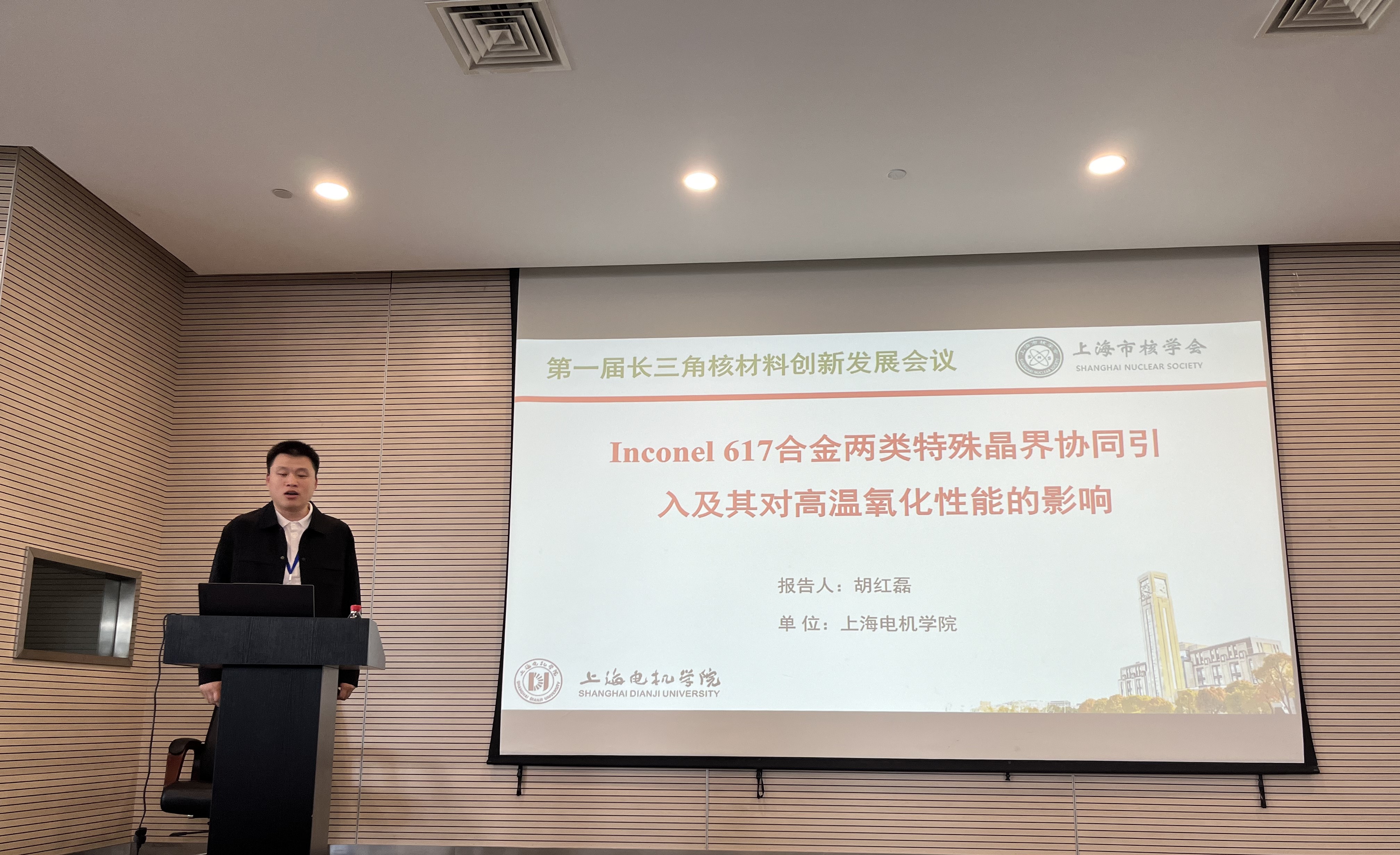 来自香港科技大学、上海交通大学、牛津大学、中国科学院上海应用物理研究所、中国科学院上海硅酸盐研究所宝和武特种冶金有限公司等国内外知名高校、研究所和企业的200余名代表参与了本次会议。会议邀请了香港科技大学/上海大学张统一院士,上海应用物理所原所长徐洪杰教授等专家进行了特邀报告。上海市核学会核材料专委会委员,开云kaiyun体育副教授胡红磊受邀进行了“Inconel 617合金两类特殊晶界协同引入及其对高温氧化性能的影响”主会场报告。通过参加本次会议,我校师生了解了国内外核材料研发、核电技术应用等方面的发展现状,增进了我校与长三角地区以及全国核材料科学与技术的交流。