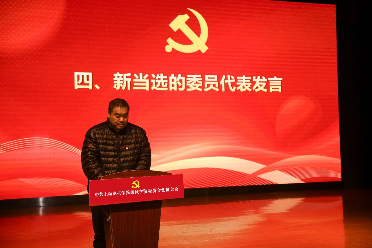 代元军同志代表新当选的委员进行了发言,他表示感谢全体党员的信任与支持,在今后工作中将在校党委和新一届院党委的领导和支持下,开拓创新,务实高效开展工作,以昂扬斗志和积极向上的精神,围绕学院学科建设、人才培养、科研创新、产教融合、对外合作、治理体系等方面刻苦专研,奋力探索,不辜负党委的重托和同志们的期望。